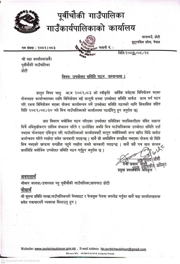 » उपभोक्ता समिति गठन सम्बन्धमा ।।