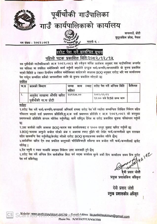 दररेट पेश गर्ने सम्बन्धित सूचना ।।