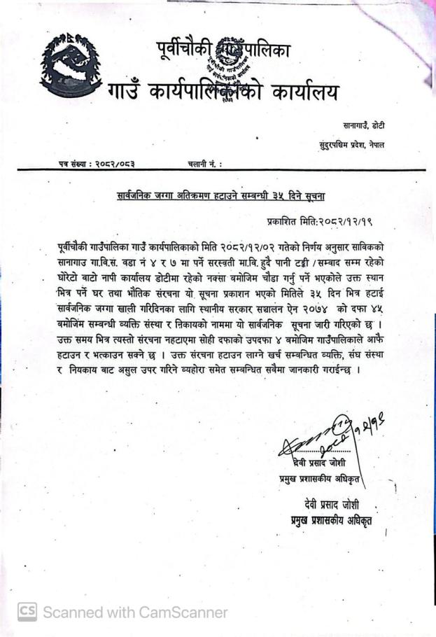सार्वजनिक जग्गा अतिक्रमण हटाउने सम्बन्धी ३५ दिने सूचना