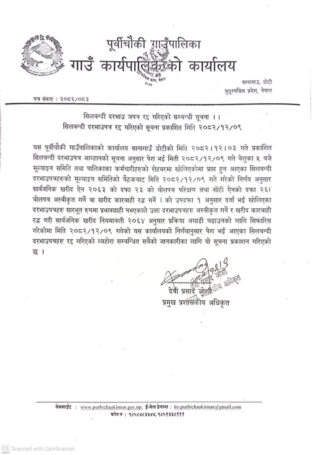 » सिलबन्धी दर भाउ रद्द सम्बन्धित सुचना !!