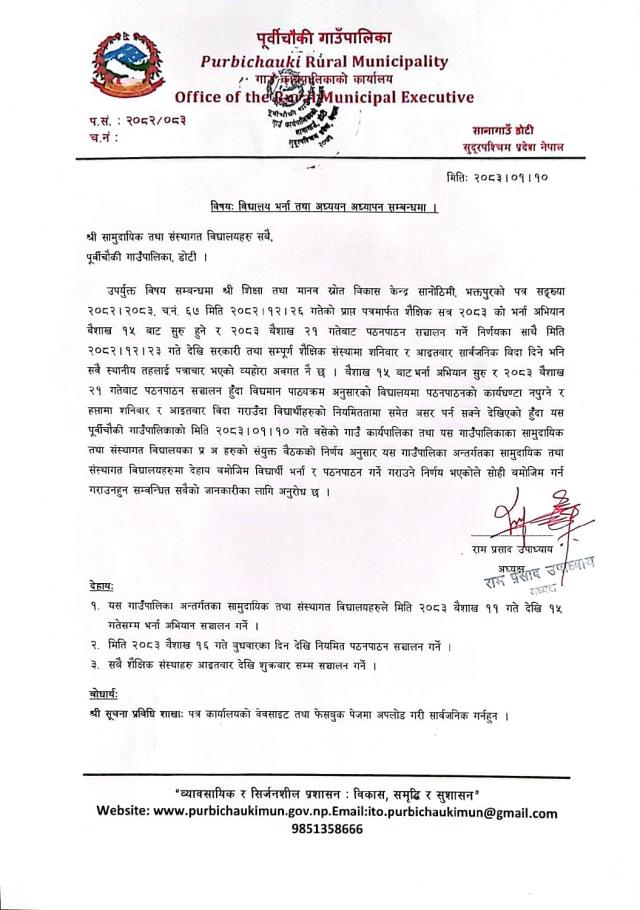 » विद्यालय भर्ना तथा अध्ययन अध्यापन सम्बन्धमा ।।