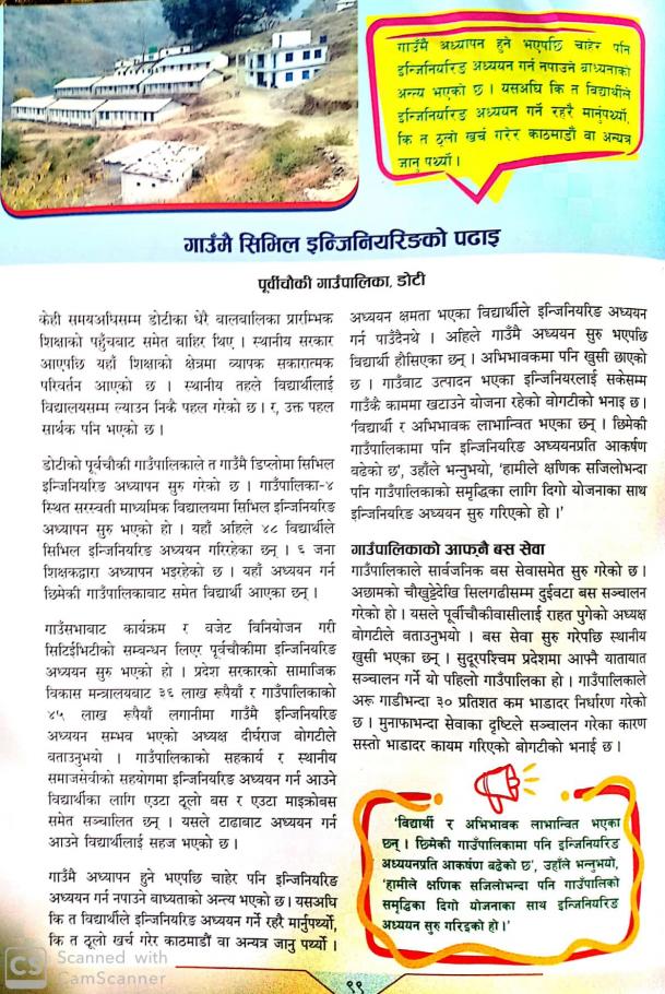 पूर्वीचौकी गाउँपालिका १०१ असल अभ्यास गर्ने भित्र पर्न सफल गाउँपालिका