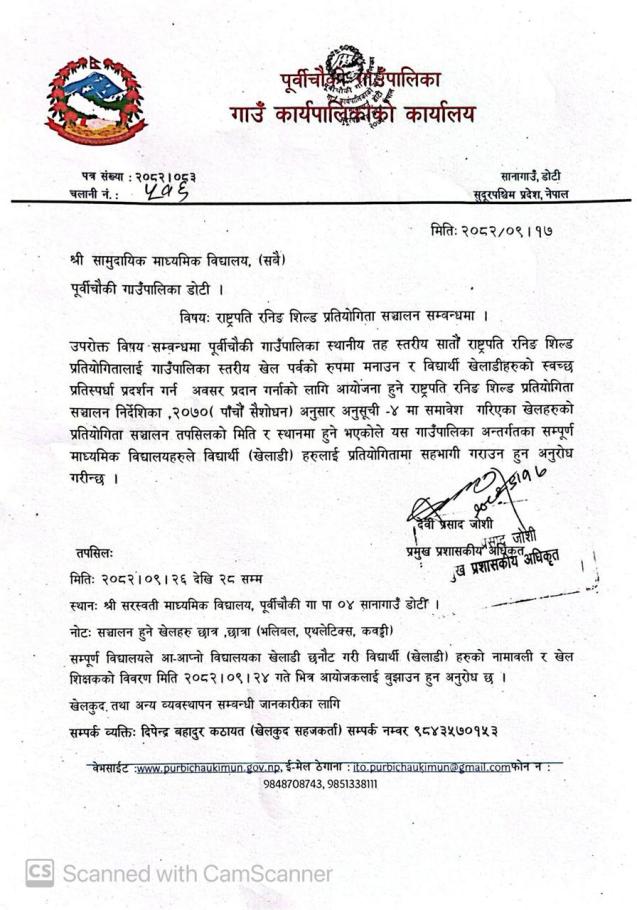 » राष्ट्रपति रनिङ शिल्ड प्रतियोगिता सञ्चालन सम्बन्धमा ।।