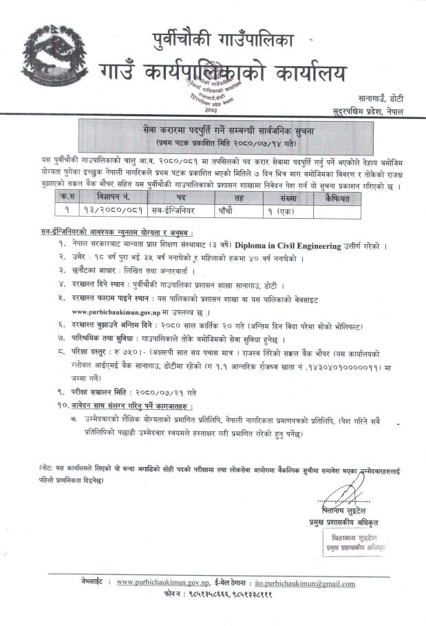 सेवा करारमा पदपुर्ति गर्ने सम्बन्धी सार्वजनिक सूचना