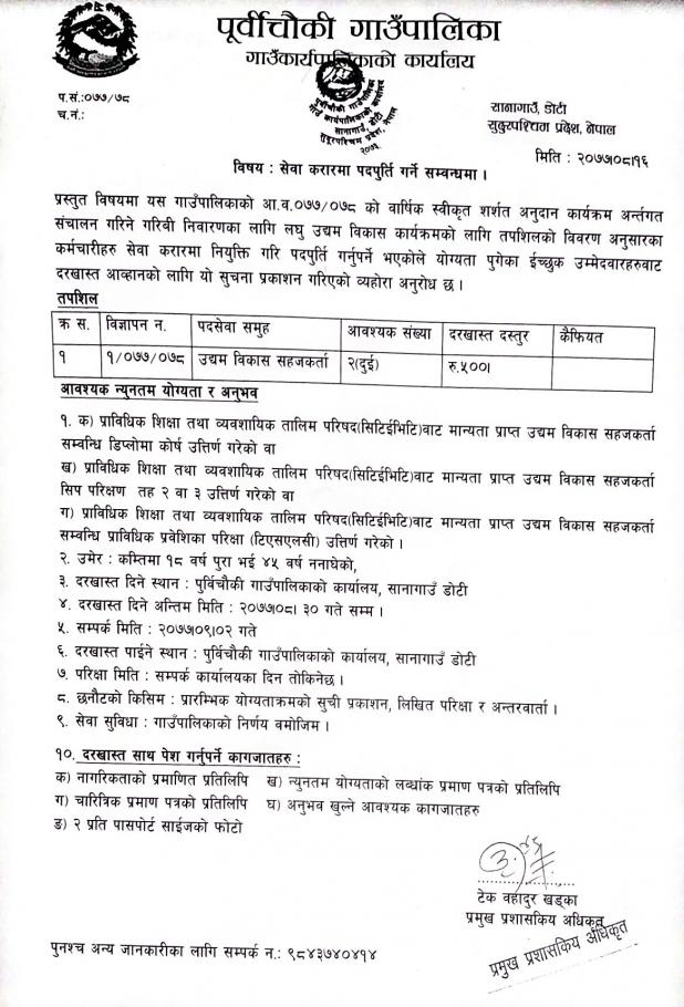 सेवा करारमा पदपूर्ति सम्बन्धी सूचना