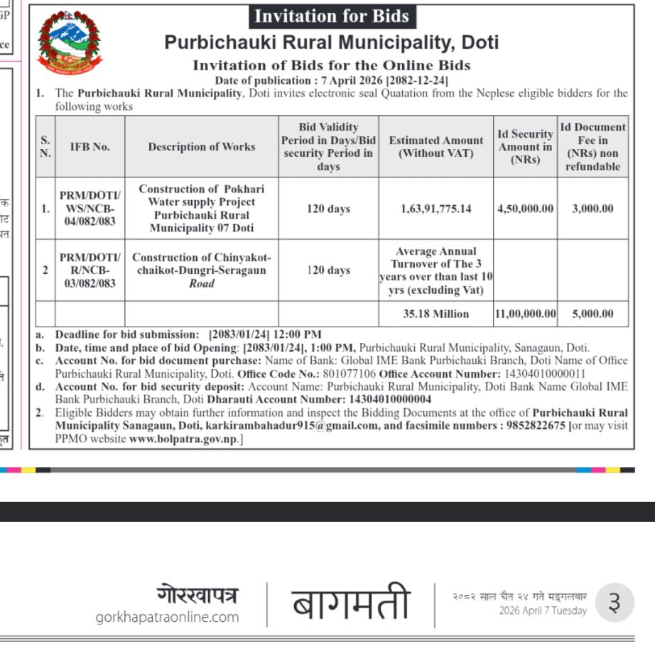 Invitation of Bids for the online Bids ।।